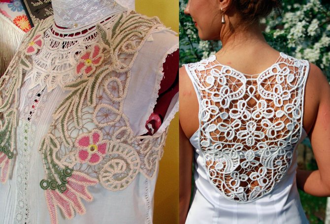 Кружево используется для создания разных дизайнерских вещей, например, одежды, сумок, также классно смотрятся салфетки в такой технике.