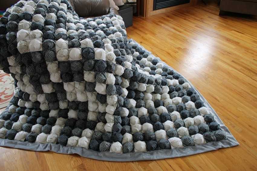 - из трикотажных футболок, отслуживших свое, получится оригинальный коврик для дома: